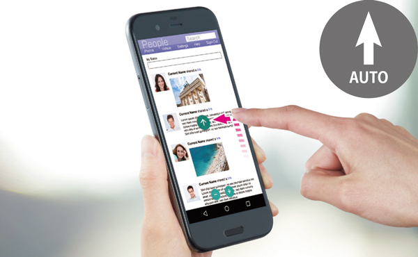 スクロールを自動化。テレビを流し見する感覚でコンテンツを楽しめます。また、ハイスピードIGZOなのでスクロール中もなめらかに文字を読むことができます。