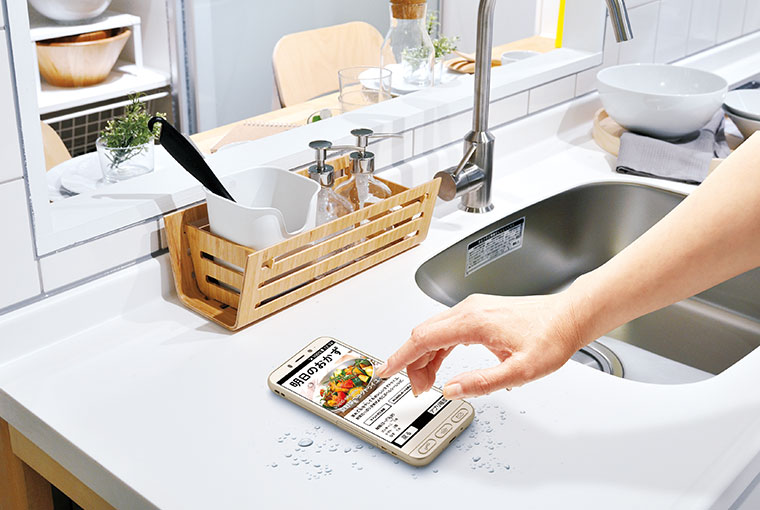 ● 水まわりでも安心して使える防水対応 ● 濡れた手でも快適にタッチ操作できる ● 防塵・耐衝撃でアウトドアでも安心