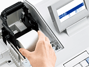 ロール紙の交換は投げ込み方式を採用し、簡単に行えます。混雑時などもすばやく交換できます。
