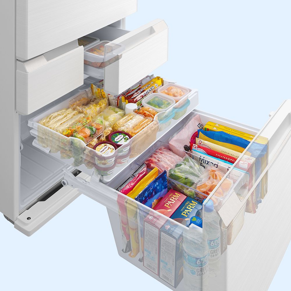 大容量だからこそ収納が大事。食品の積み重ねを防ぎ、きれいにすっきり収納。
