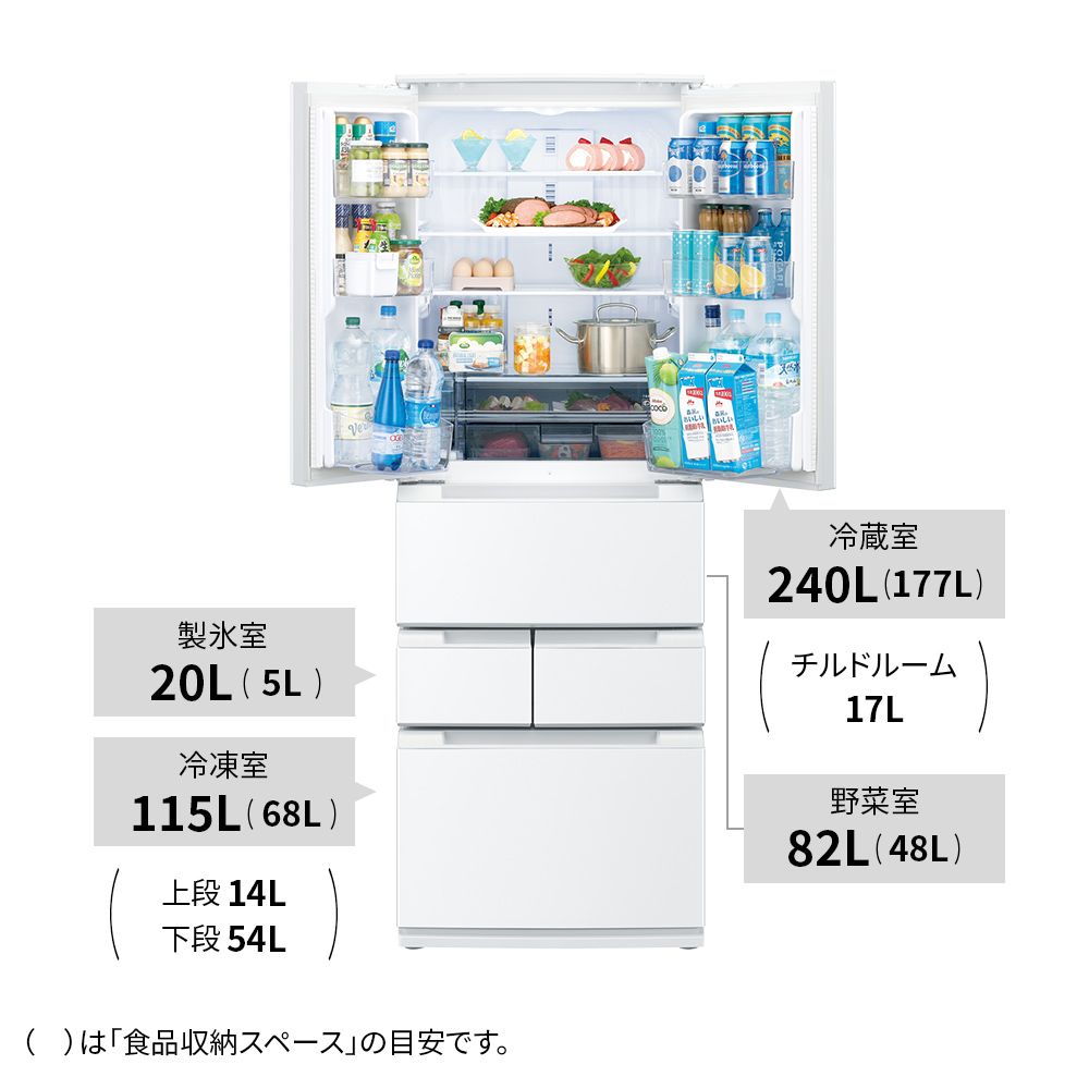 - ※2定格内容積は、日本産業規格(JIS C 9801-3:2015)に基づき、庫内の温度制御に必要でない庫内部品(棚やケース等)を外した状態で算出したものです。