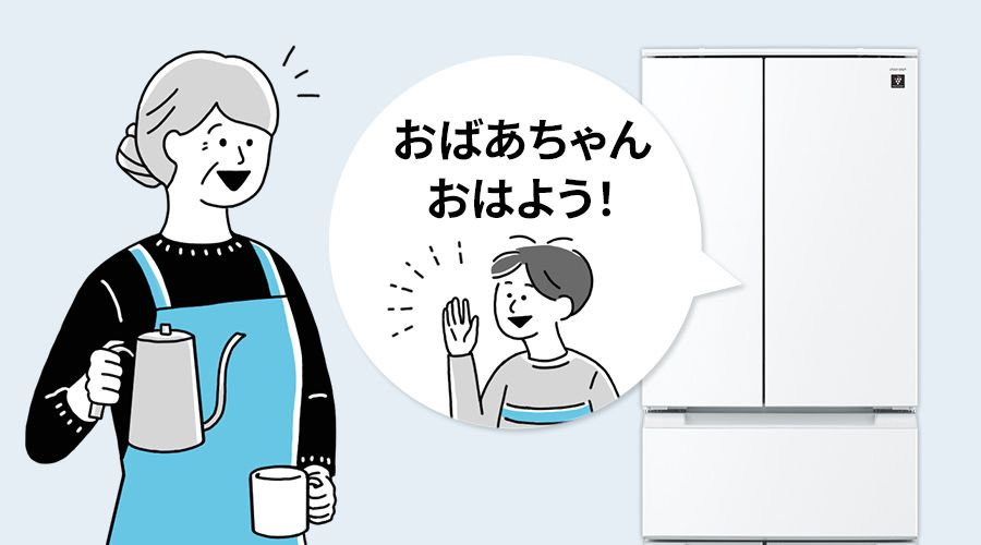 見守りたい家族の冷蔵庫を登録すると、ドア開閉から安否をお知らせ。離れて暮らす家族や留守番中のお子様をスマホで確認できて安心です。
