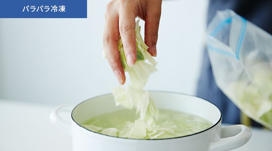 フレキシブルトレーに食材を入れて、下段冷凍室の中央にセットするだけで、栄養素や食感をキープできる※2「快速冷凍」や使いたい分だけ取り出して使える「パラパラ冷凍」、煮物などが短時間でおいしく作れる「味しみ冷凍」など、食材や用途に合わせた冷凍をすることができます。