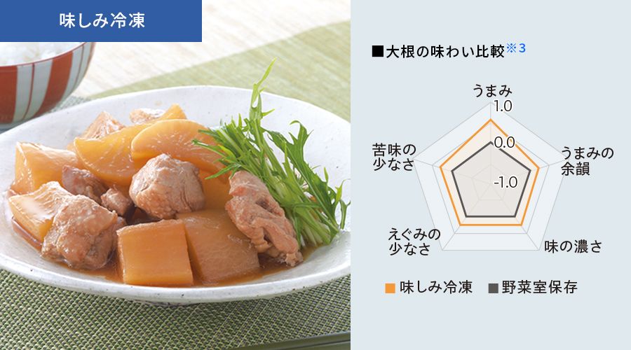 1枚目:快速冷凍、2枚目:パラパラ冷凍、3枚目:味しみ冷凍