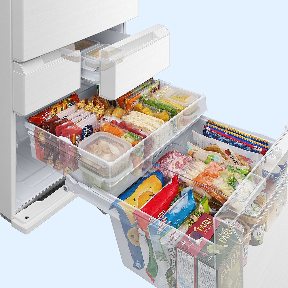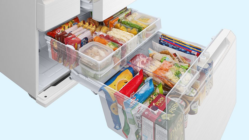 大容量だからこそ収納が大事。食品の積み重ねを防ぎ、きれいにすっきり収納。