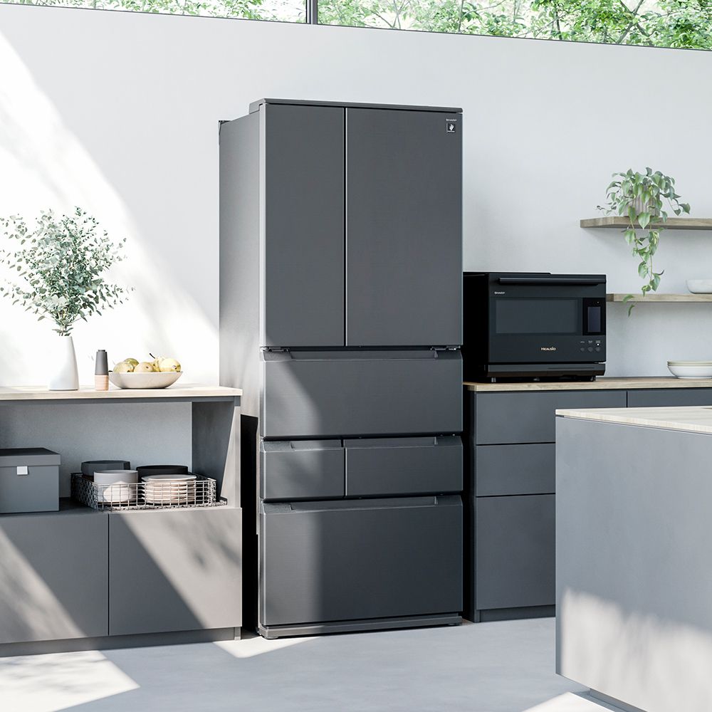 - ※12026年度機種SJ-MF55R「雪下シャキット野菜室 鶴」による試験。実使用を想定した野菜室に野菜を投入。外気温20℃、ラップなし、ドア開閉なし、チルドモードONで10日間保存により当社にて算出。野菜の種類や状態、収納量などにより効果は異なります。