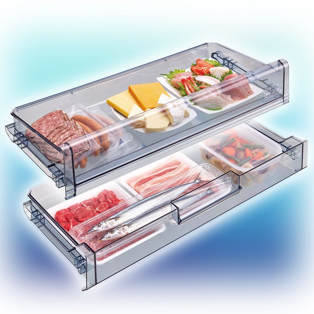 奥行き薄型63cm、野菜を10日間シャキット保存※1、特大氷が作れるトリプルメガアイス搭載