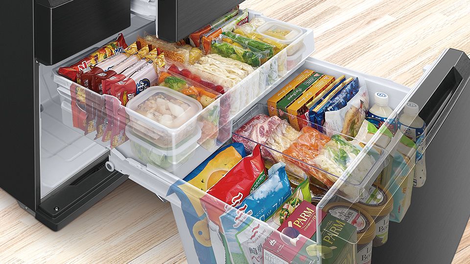 大容量だからこそ収納が大事。食品の積み重ねを防ぎ、きれいにすっきり収納。