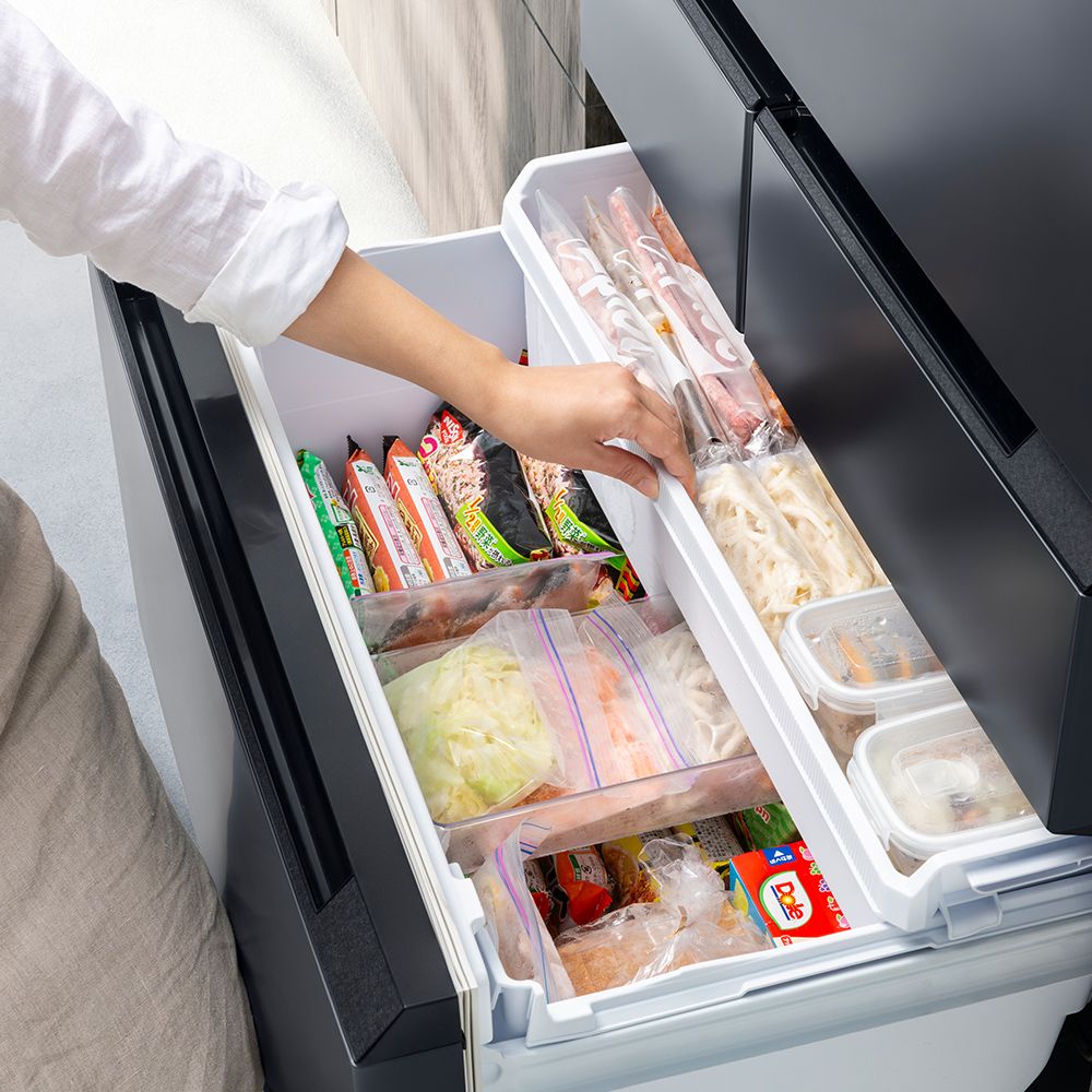 大容量だからこそ収納が大事。食品の積み重ねを防ぎ、きれいにすっきり収納。