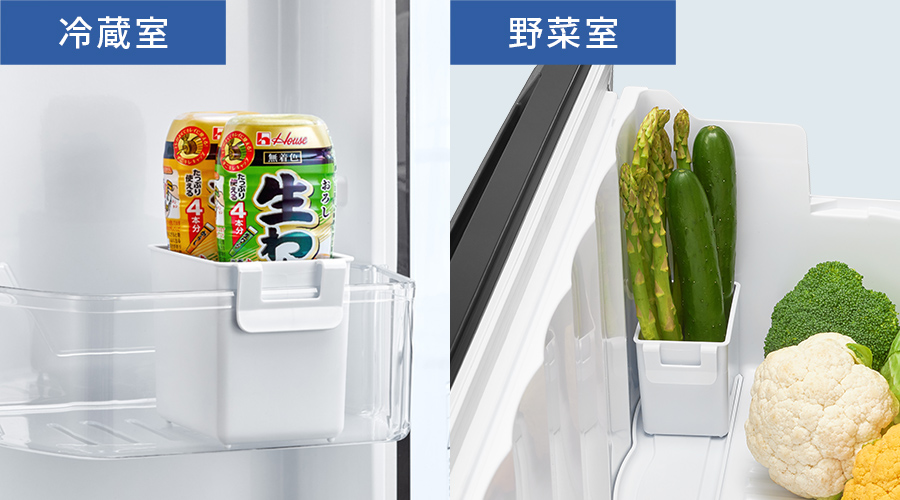食品にあわせて使い分けができる2機能のチルドルーム
