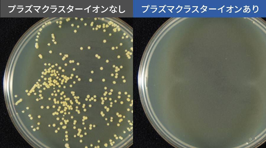 - ※2 浮遊菌除菌効果(100Lのボックス内での実験結果。実使用空間での実証結果ではありません。)【試験依頼先】(一財)石川県予防医学協会【試験成績書】第H1600196K号【試験方法】100Lのボックス内に菌を塗布した寒天培地を配置し、プラズマクラスターイオン放出6日後の生菌数を測定(プラズマクラスターイオン濃度:50,000個/cm³)【対象場所】冷蔵室内【試験結果】6日間で除去率99%以上