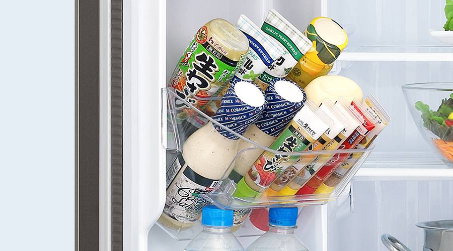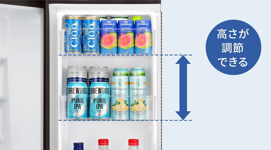 ビンやボトルの高さに合わせて、ドアポケットの高さを調節できます。