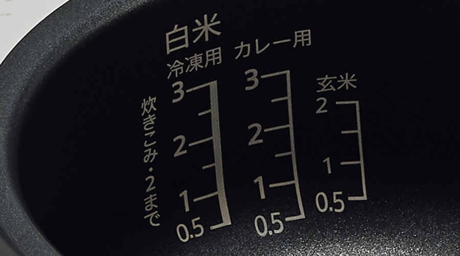 「厚釜」がお米の芯まで熱を伝え、底面を球状にした「球面炊き」でおいしく炊き上げます。白米以外にも、無洗米・おいそぎ・冷凍用・カレー用・おかゆ・エコ炊飯など用途に合わせて使い分けができます。