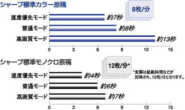 ※時間は、原稿1枚の印字動作開始から排紙までを測定(2000年9月シャープ調べ)。