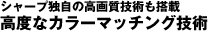 シャープ独自のアルゴリズムで、各色インクの特性に合わせて印刷データを変換。原画像に忠実な色調で仕上げます。6色カラー、1200dpiの高解像度に加え、この技術の採用により、文字通りの写真高画質を実現しました。