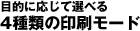 | 原稿内容と目的に応じて、画質とスピードが最適なバランスのモードを選択できます。各モードはプリンタドライバ画面で、初心者の方でも簡単に設定できます。 |