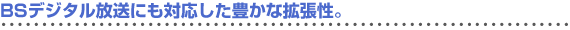 AV拡張ボックスにはTVチューナーを内蔵。D1映像入力端子※4を装備し、BSデジタル放送の高画質映像も実現。またビデオ入力端子2系統※4(S映像入力端子1系統付)を備え、DVDプレーヤーやビデオデッキ、ゲーム機など2台までの同時接続が可能です。ワンタッチ切り替えで、多彩なメディアの映像を美しく再現します。 ※4 D1端子とビデオ入力端子1系統の切り替えとなります。 | |  |