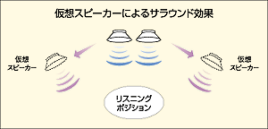 | スタンド部にスピーカーシステム(2W+2W)を内蔵しており、小型ながらバスレフ方式設計による迫力ある低音再生を実現。さらに移相方式マトリクスサラウンドシステムにより、小さな音量でもステレオ感を損なわず豊かな音の広がりが実感できます。ヘッドホンをつないでサラウンドを楽しむことも可能です。 | |  |