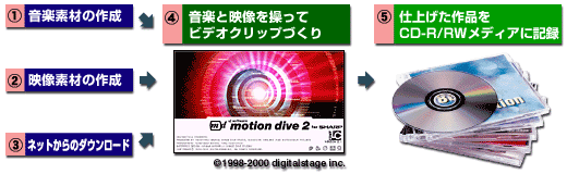 」を使って、CD-R/RWメディアに記録。自分だけのマルチメディアCDアルバムが簡単に作成できます。付属の「motion dive PLAYER