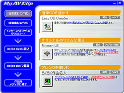 音楽や映像を、つくって、遊んで、楽しむために、AV系のクリエイティブソフトを満載しています。お気に入りの音楽や自分で撮った映像などを使い、オリジナルのビデオクリップが楽しく簡単に作成できます。