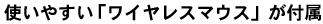 じっくりと取り組むパソコンワークに、快適操作を実現する無線方式のワイヤレスマウスが使用できます。
