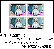 アクセサリーキットVR-KTF1Pへ携帯に便利なカードサイズプリントができるカードプリントベースを同梱。ペン入力やタイトル・背景デザインデータとの合成によるプリントや同一4画面プリントなど、多彩なプリントが可能です。(シールも作成可能です)