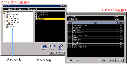 ![]() ■ライブラリ管理画面 ジャンルやアーティスト別など、好みに合わせてディスクを管理できるライブラリ機能内蔵 ![]() ![]() ■ラベル印刷 ディスクラベル(4種類)/ディスク背面ラベル/ケースラベル印刷の背景は、8つのパターンを用意しています。またデジタルカメラなどからお好きな画像(BMPデータ)を背景パターンとして設定することも可能です。 ![]() ≪必要なシステム≫ ●MD
