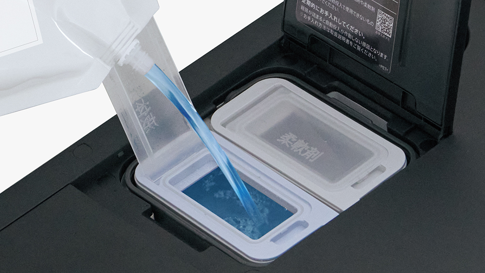 洗濯物の量に合わせて、液体洗剤や柔軟剤の適量を洗濯機が自動投入。洗剤が詰まりにくく、液だれもしにくいので、自動投入タンクのお手入れもカンタンです。