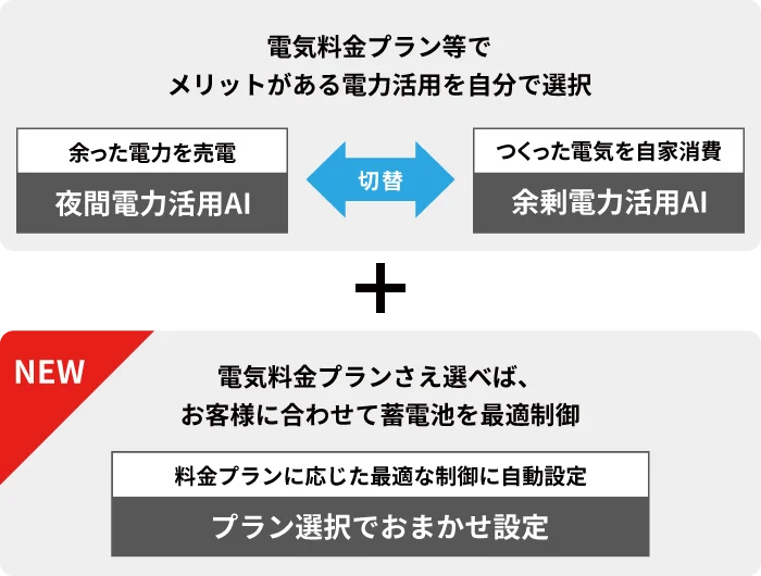 プラン選択でおまかせ設定電気料金プランに応じた最適な制御に自動設定NEW