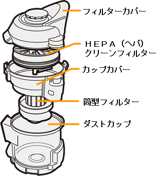 - ダストカップセットの各部を順に取りはずしてください。