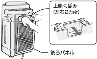 フィルターの取り付けかた(後パネルの取り付け、取りはずし)お手入れ時期の目安:1カ月に1回程度