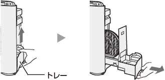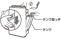タンク取っ手を下に押した後、手前に引いてタンクを取り出す