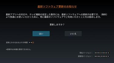 ※ソフトウェアの更新中は、電源プラグを抜かないでください。