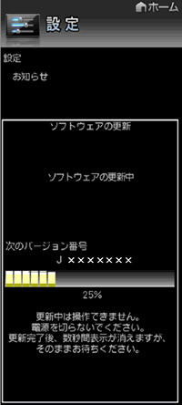 ソフトウェアの更新が始まり、右記の画面が表示されます。何も操作をせずに、更新が完了するまでそのままお待ちください。