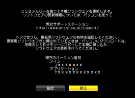 ※ソフトウェアの更新に失敗した場合は、USBメモリーのデータを確認し、もう一度ソフトウェアの更新作業を行ってください。