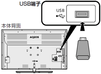 本機のUSB端子に、更新用ソフトウェアを書き込んだUSBメモリーを取り付けます。