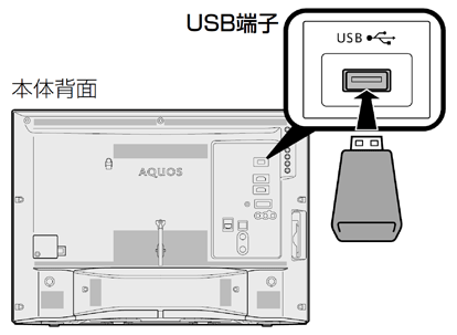 ※テレビなどを視聴中に、本機のUSBメモリー端子にUSBメモリーを取り付けるとUSBメディア画面が表示されますが、そのまま次項目以降の操作を行ってください。