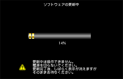 ソフトウェアの更新が始まり、右記の画面が表示されます。何も操作をせずに、更新が完了するまでそのままお待ちください。