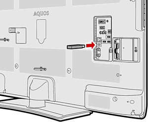 本機のUSBメモリー端子に、更新用ソフトウェアを書き込んだUSBメモリーを取り付けます。
