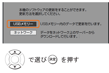 ※画面の[USBメモリー]をリモコンカーソルボタンで選んで、[決定]を押します。