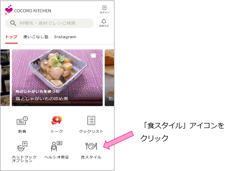 ホーム画面の「食スタイル」アイコンをクリックすると、食スタイル画面を表示します。