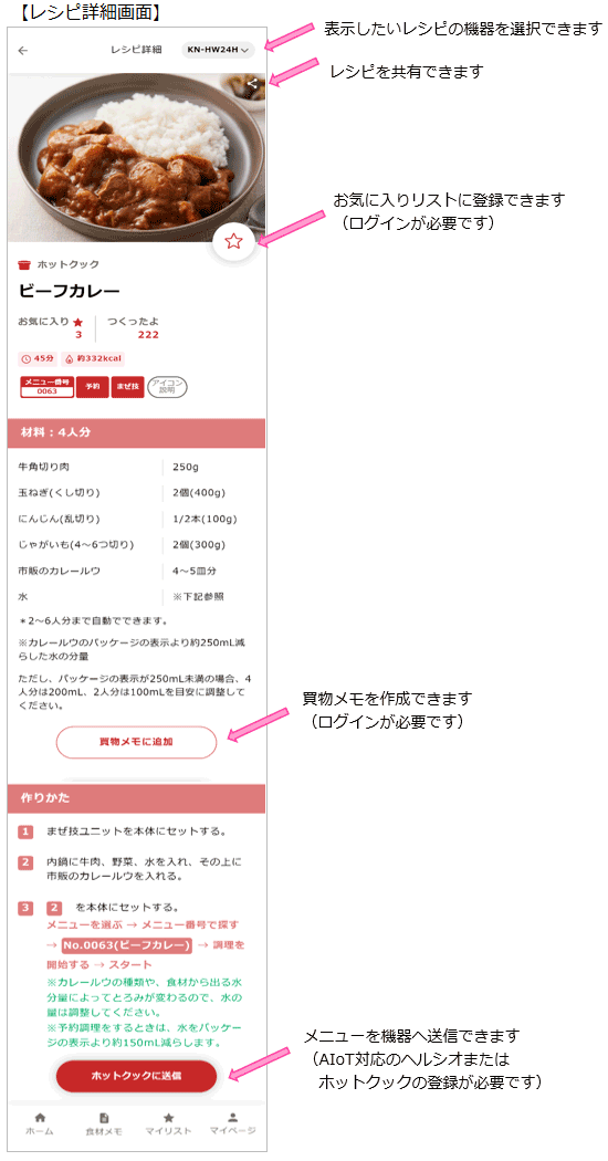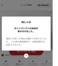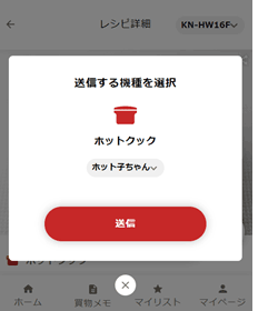 機器連携しているヘルシオ、ホットクックにメニューを送信できます。