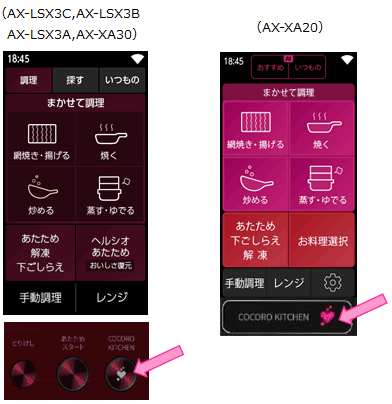◆ヘルシオ AX-LSX3C、AX-LSX3B、AX-LSX3A、AX-XA30、AX-XA20の操作