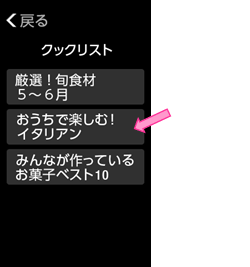 各クックリストの画像を押すと、該当するクックリストのメニュー一覧を表示します。