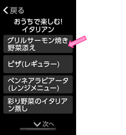 - 選んだクックリストのメニューが表示されます。