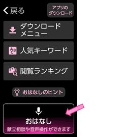前のページに戻る場合は「戻って」と話しかけてください。