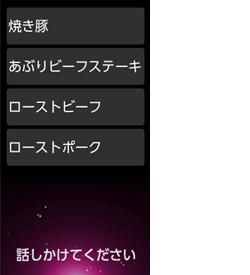 こんなフレーズも使えます クックリストお願い クックリスト見たい クックリスト選ぶ クックリスト料理する - 呼び出したクックリストのメニューが表示されます。