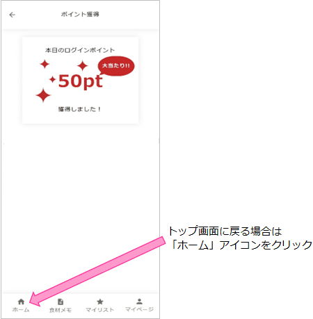 - マイページ画面の「今日のログインポイント獲得」バナーをクリックします。
