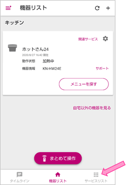- COCORO HOMEアプリのタイムライン画面に、既にCOCORO KITCHENアプリで登録済みの機器を見つけたというお知らせが表示されるので「機器リストへ」を押してください。