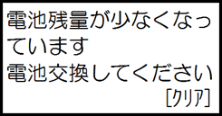・電池残量不足メッセージ ([クリア]キーを押すと、元の画面に戻ります)